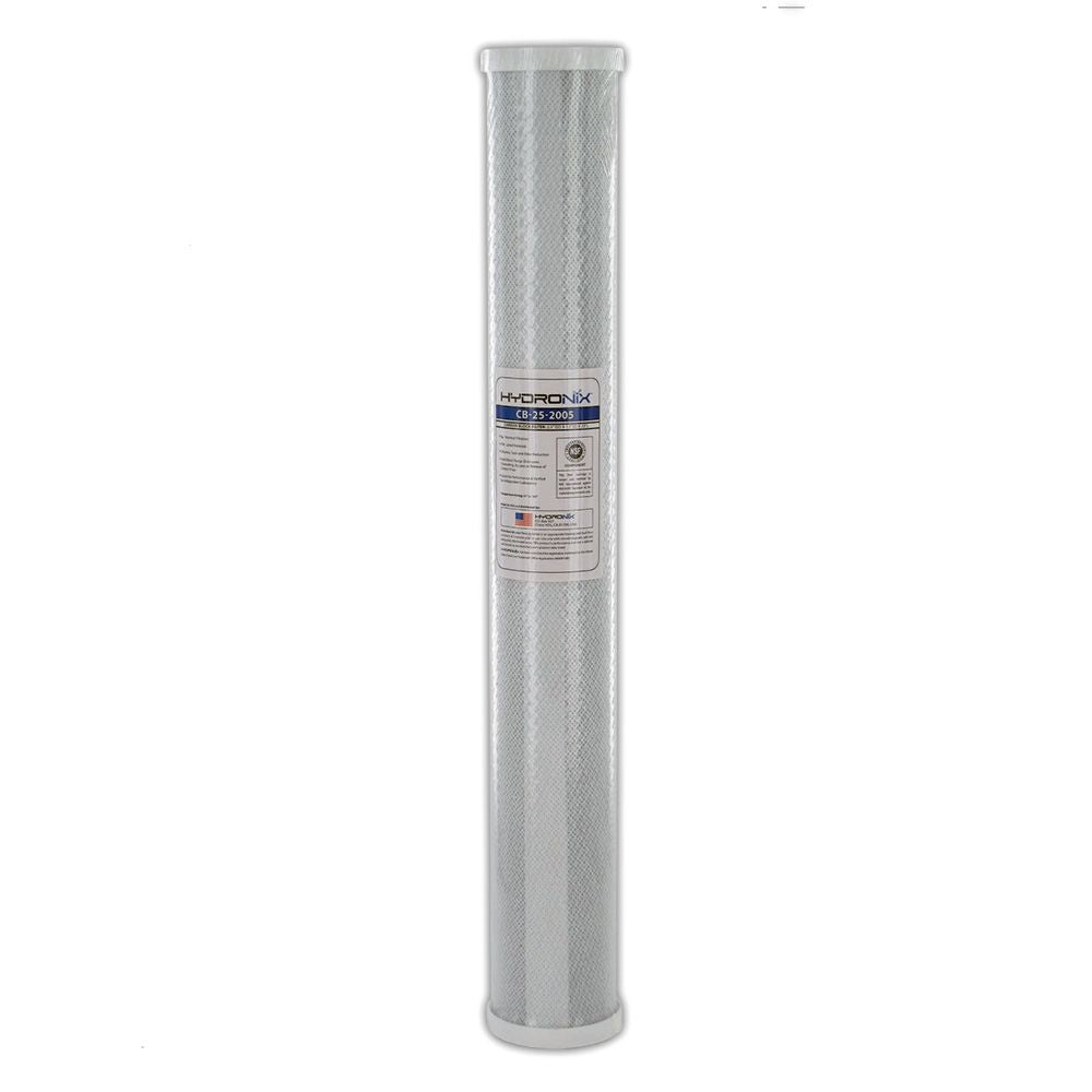 The Hydronix Water Technology CB-25-2005 Carbon Block Filters are manufactured with high purity coconut shell activated carbon. Hydronix Water Technology carbon blocks provide high chlorine reduction, great dirt-holding capactiy and greatly reduced carbon fines. CB-25-2005 carbon filters are ideal for point-of-use (POU) and reverse osmosis applications, but can also be used in a wide range of residential, food service, commercial and industrial applications.