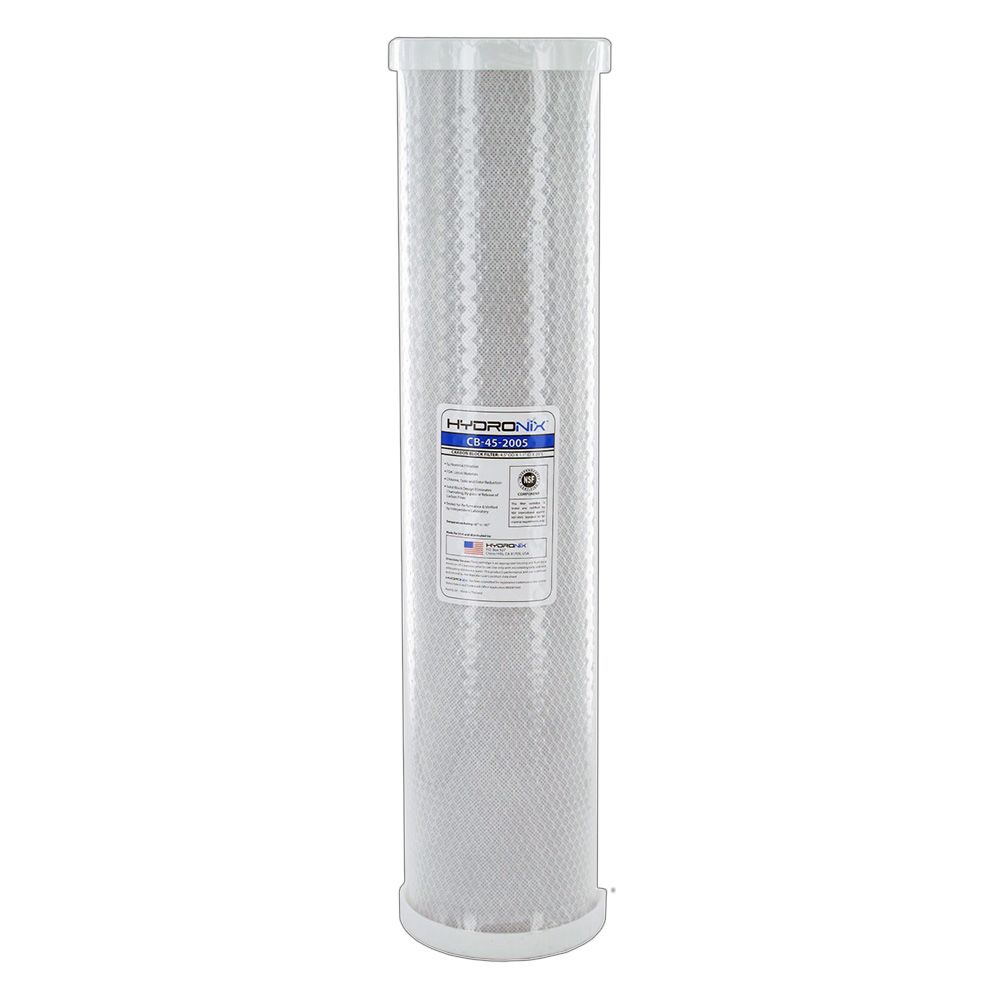 Hydronix Water Technology CB-45-2005 Carbon Block Filters are manufactured with high purity coconut shell activated carbon. Hydronix Water Technology carbon blocks provide high chlorine reduction, great dirt-holding capactiy and greatly reduced carbon fines. CB-45-2005 carbon filters can be used in a wide range of residential, food service, commercial and industrial applications.