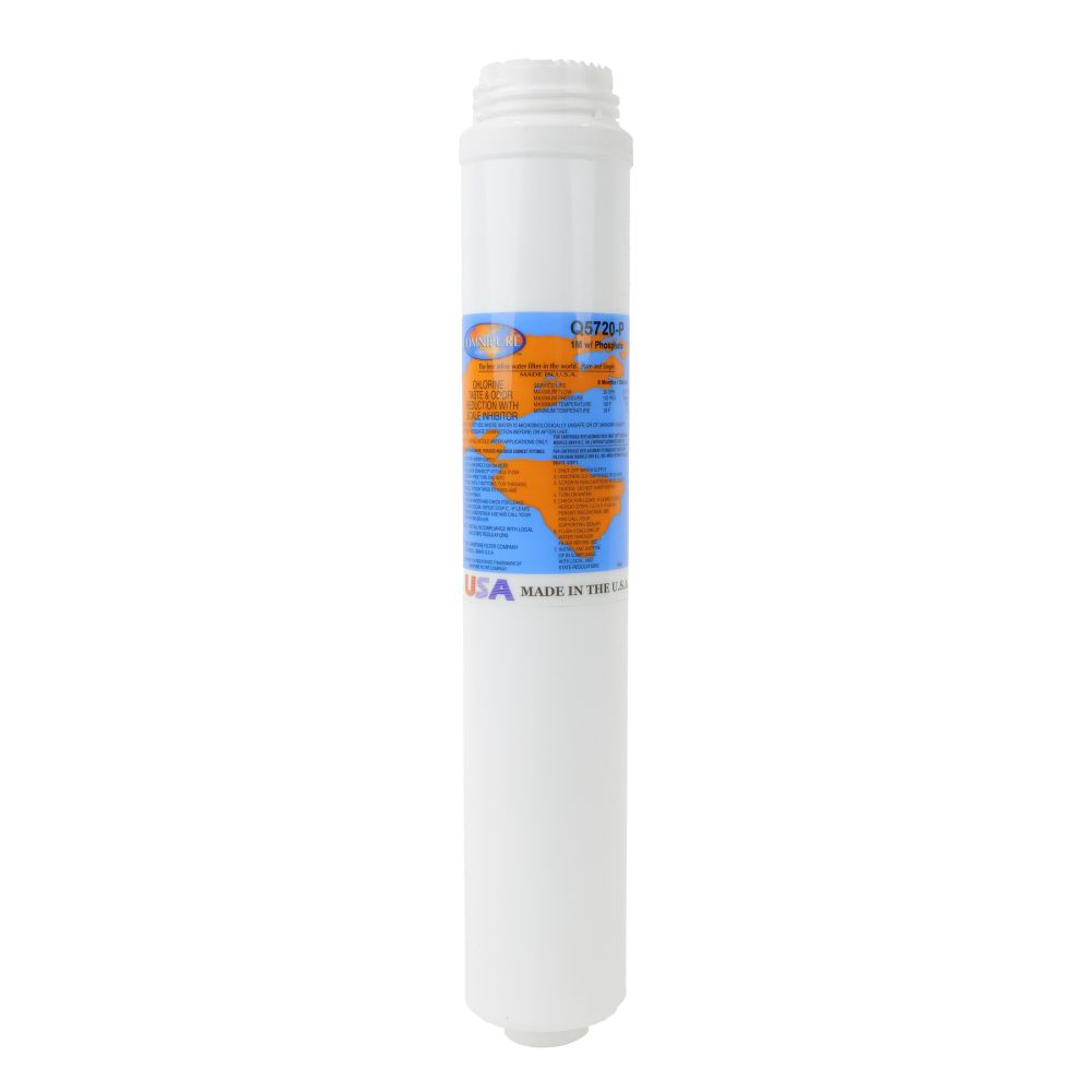 The Omnipure Q5720-P is a 14” x 2.5” twist-off carbon block filter designed for superior chlorine, taste, and odor reduction, along with cyst removal and scale inhibition. It features a 1-micron nominal rating, making it ideal for applications that require both fine particulate filtration and microbial protection—such as ice makers, RO systems, coffee brewers, and water fountains.