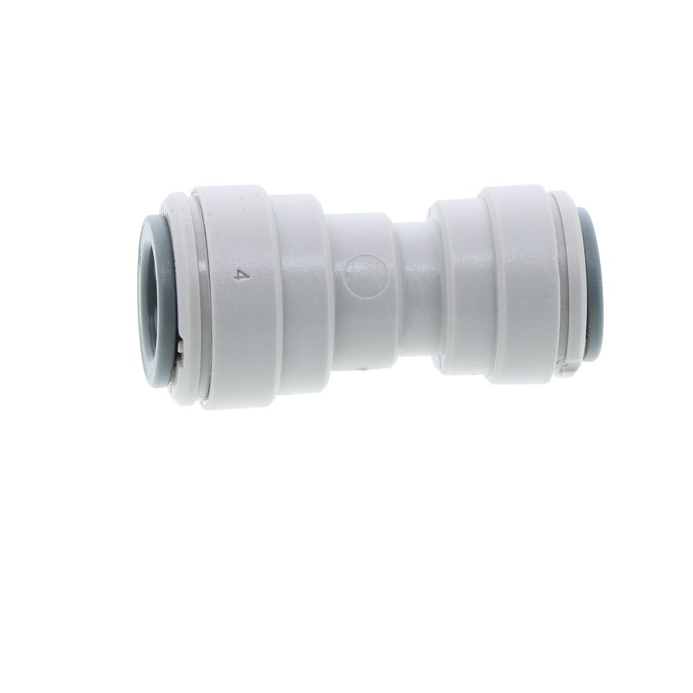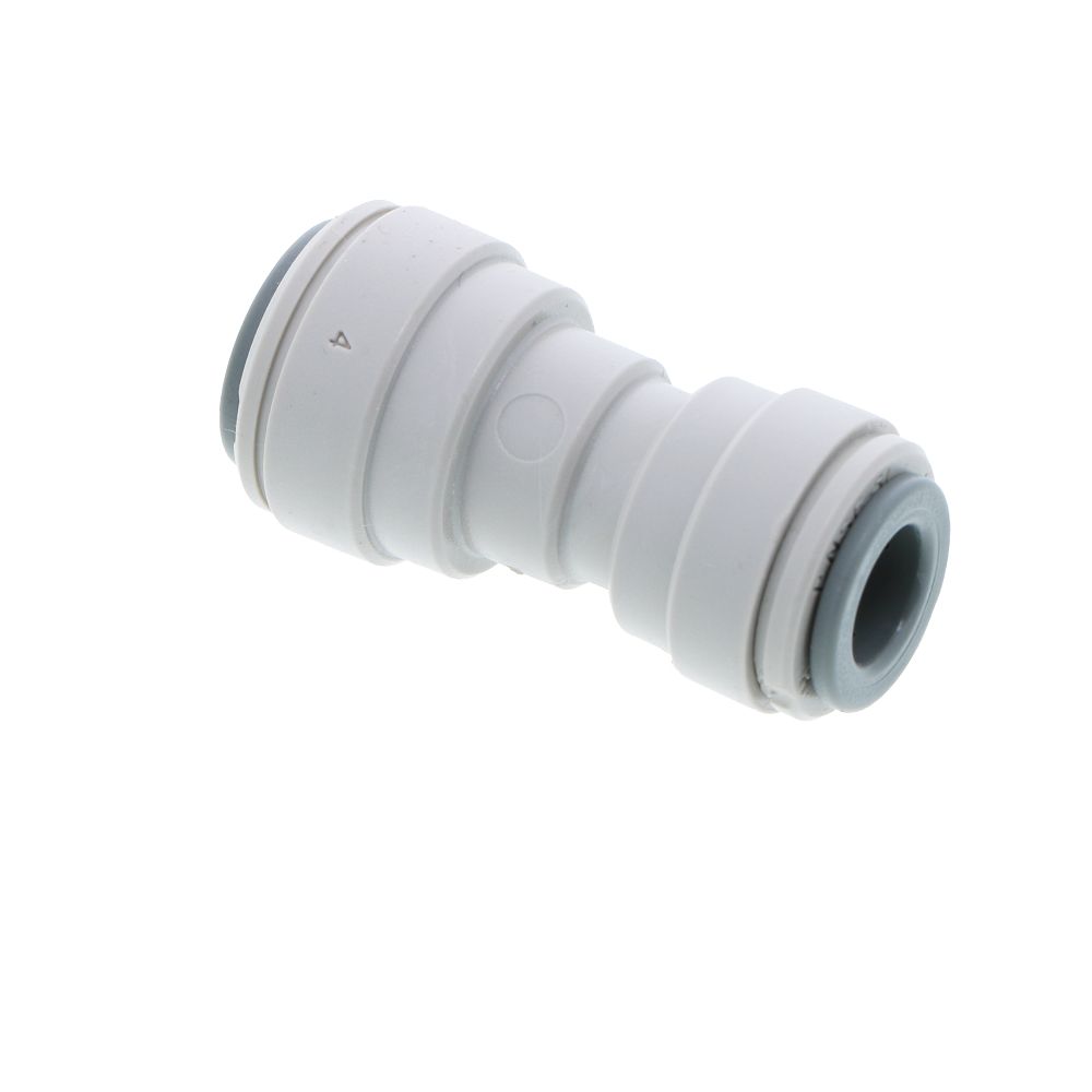 The John Guest reducing union connector makes connecting OD tubing sizes quick and easy. Manufactured in gray acetal with food grade nitrile O-ring, these fittings are suitable for food, beverage, and potable liquids. They are also suitable for air and inert gases therefore can be used for CO2 and nitrogen beverage gas lines, pneumatics, vacuum as well as other applications.