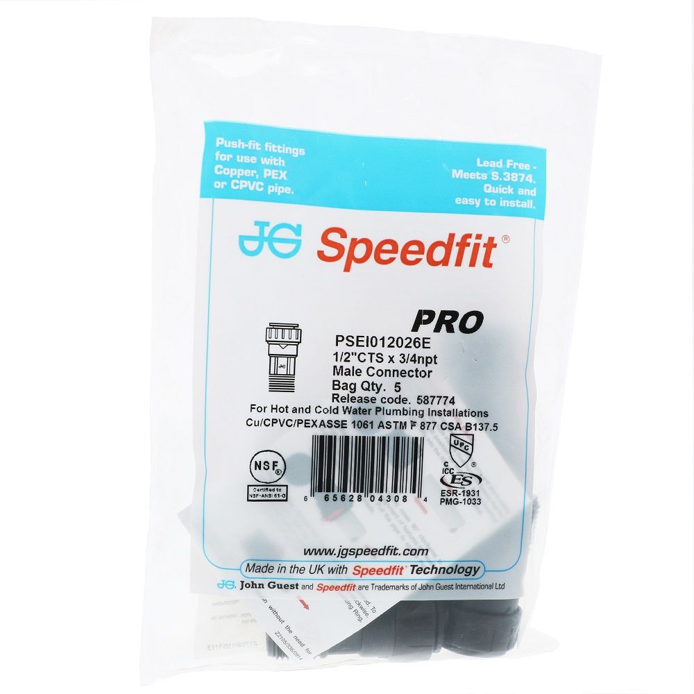 John Guest Black Male Connector - 1/2 CTS x 3/4 NPT