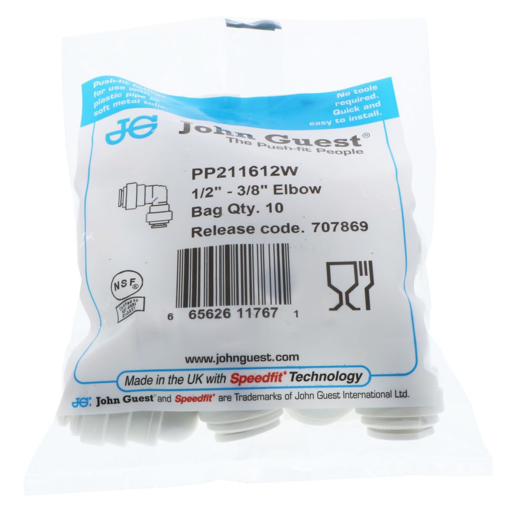 John Guest Reducing Elbow Polypro - 1/2 x 3/8