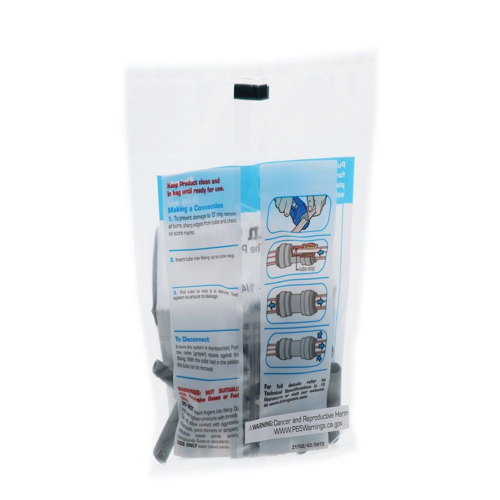 The John Guest tube to hose elbow makes connecting hose to Push-fit Fittings quick and easy. Manufactured in gray acetal, these fittings are suitable for food, beverage, and potable liquids. They are also suitable for air and inert gases therefore can be used for CO2 and nitrogen beverage gas lines, pneumatics, vacuum as well as other applications.