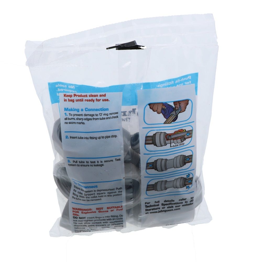 The John Guest female connectors are used for connecting OD tubing sizes to male BSPP threads. Manufactured in gray acetal with food grade nitril O-ring, these fittings are suitable for food, beverage, and potable liquids. They are also suitable for air and inert gases therefore can be used for CO2 and nitrogen beverage gas lines, pneumatics, vacuum as well as other applications.