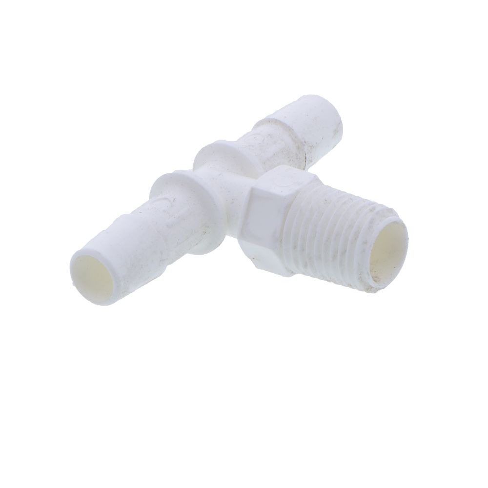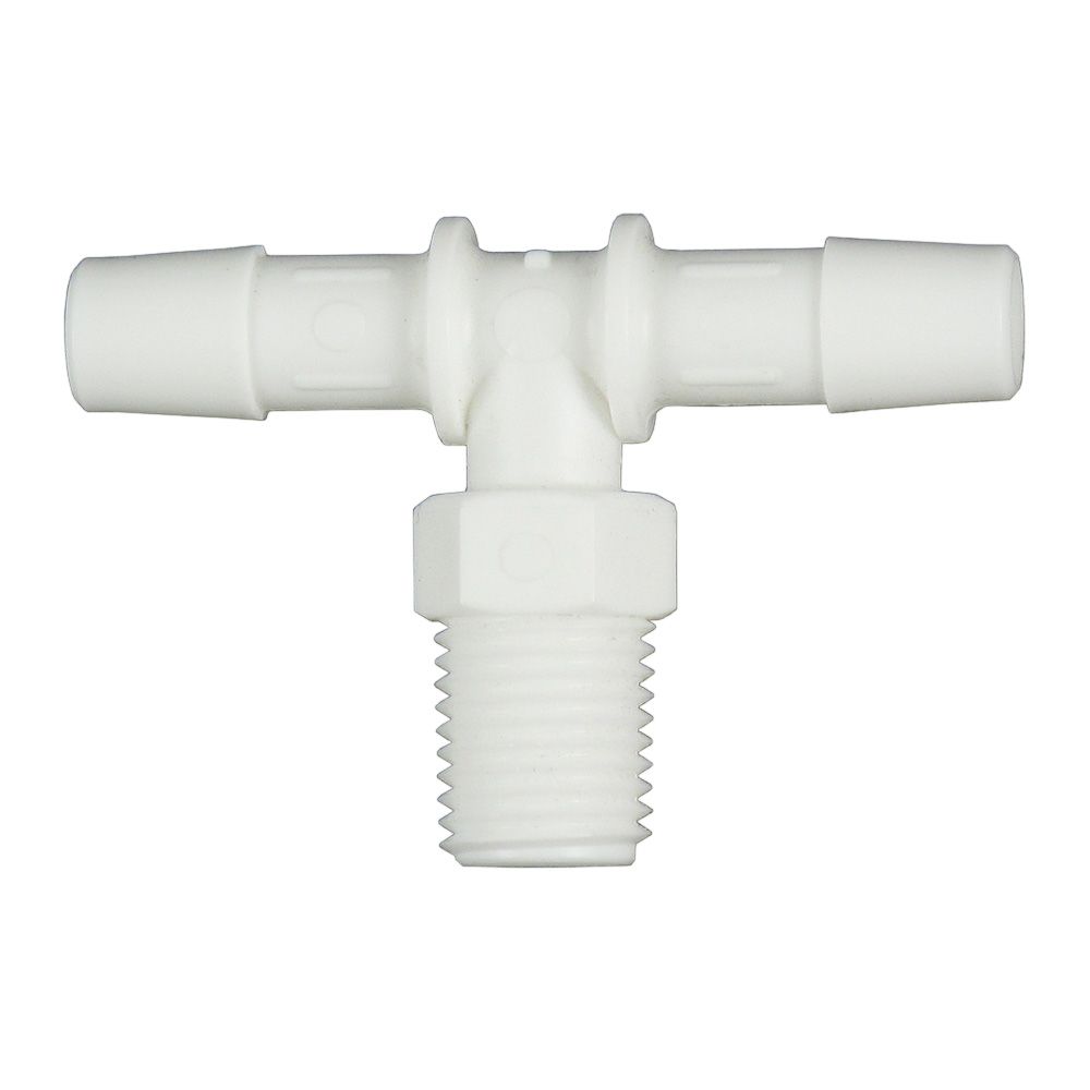 White Barb Tee x Male Branch - 3/8 ID Barb x 1/4 MNPT