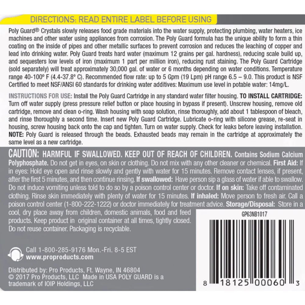Poly-Guard Crystals are perfect for preventing hard water scale and iron build-up in water systems, equipment and appliances by forming a protective coating on the surface areas with continual exposure to water. Poly Guard is released through the Pro Poly Guard Cartridge, GP10C-ITEM linked HERE.