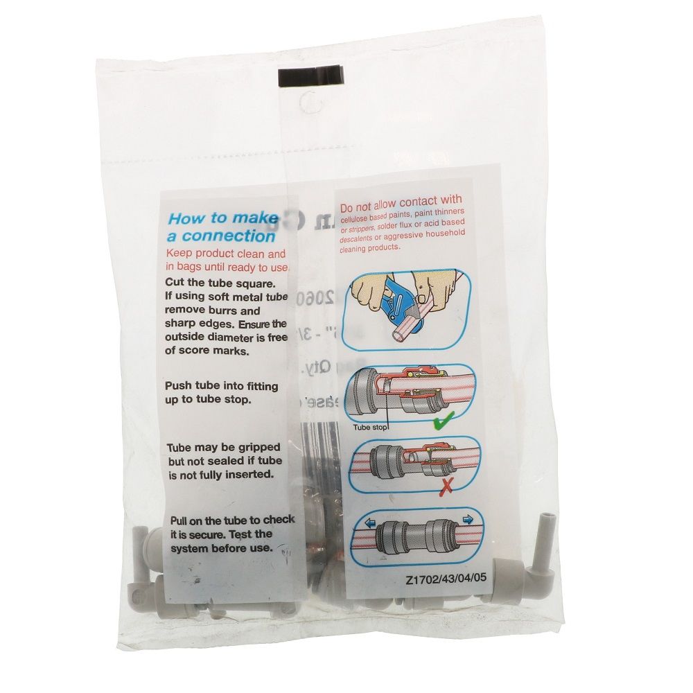 The John Guest stem elbow makes connecting OD tubing sizes quick and easy. The stem inserts into John Guest Push-fit fittings to change tubing direction 90 degrees. Manufactured in gray acetal with food grade nitrile O-ring, these fittings are suitable for food, beverage, and potable liquids. They are also suitable for air and inert gases therefore can be used for CO2 and nitrogen beverage gas lines, pneumatics, vacuum as well as other applications.
