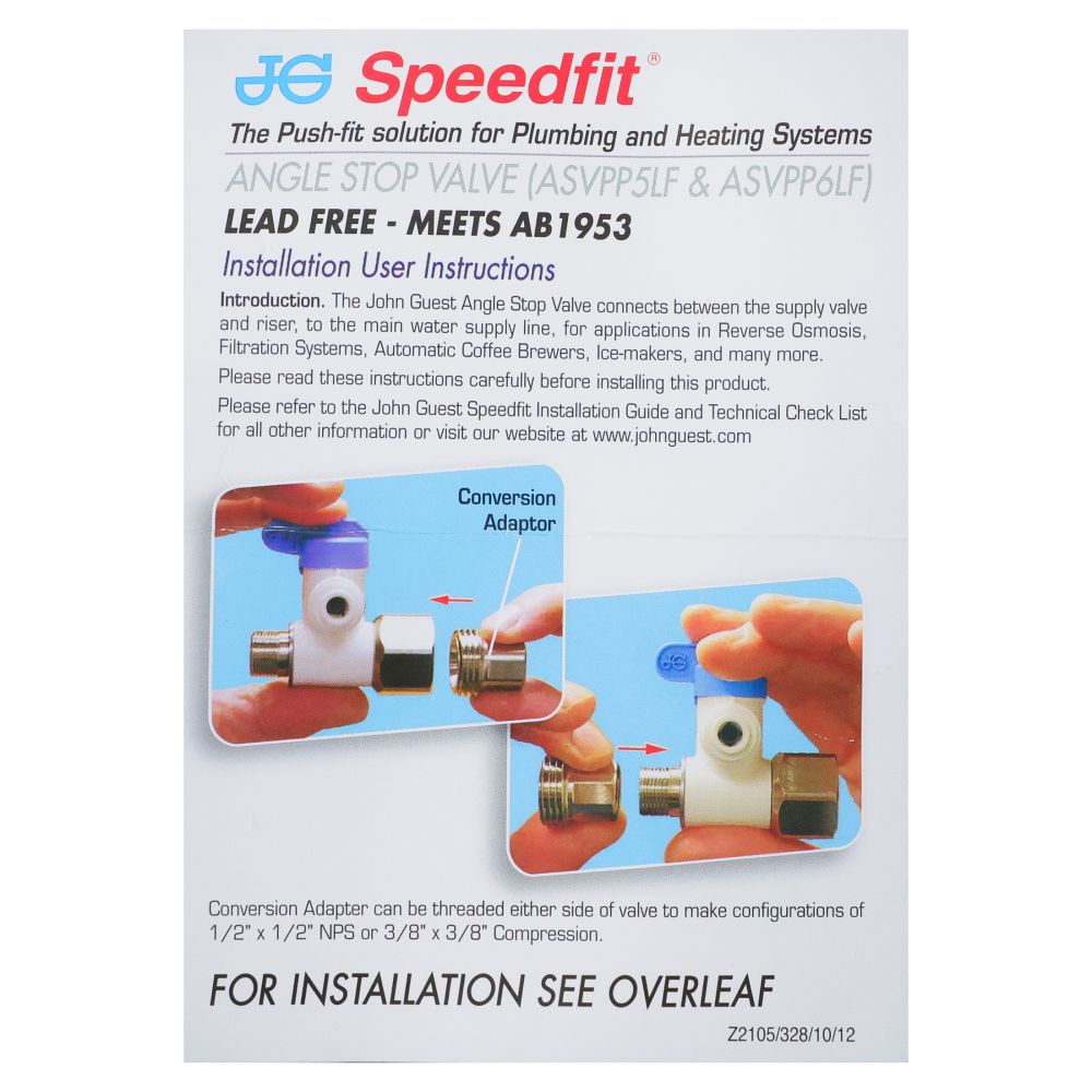 John Guest Angle Stop Adapter Valve Lead-Free - 1/2 x 3/8 x 1/4