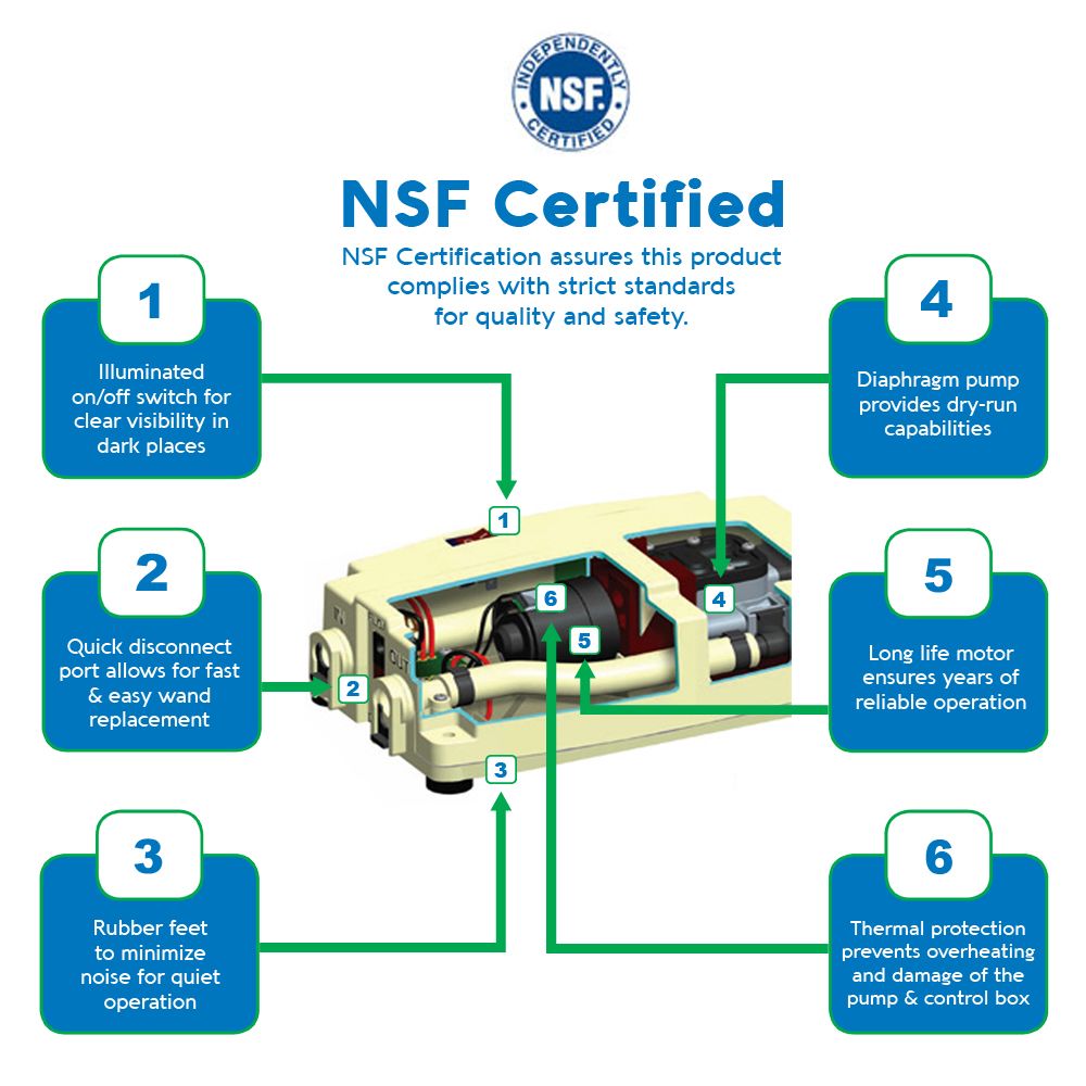 - NSF Certified NSF Certification assures this product complies with strict standards for safety and quality.