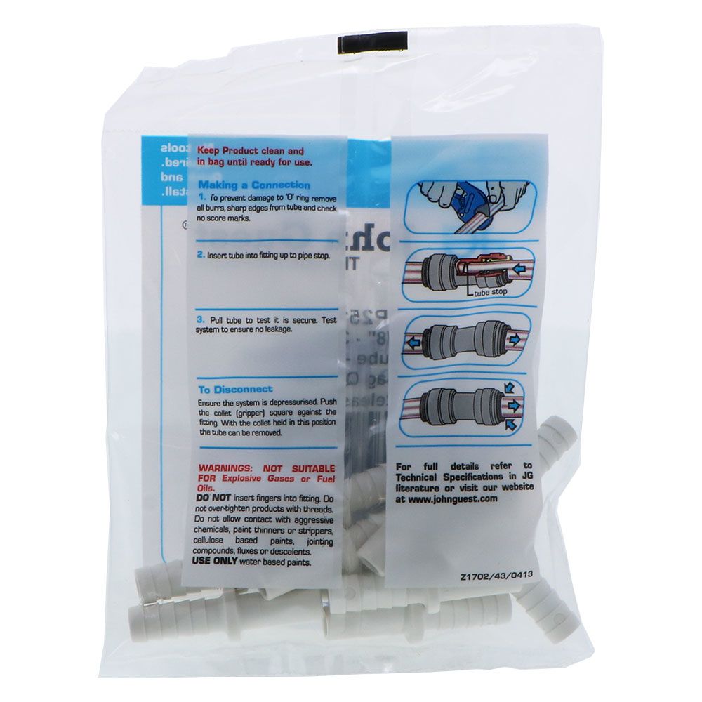 John Guest Polypro Tube to Hose Stem - 3/8 OD Stem x 3/8 ID Barb