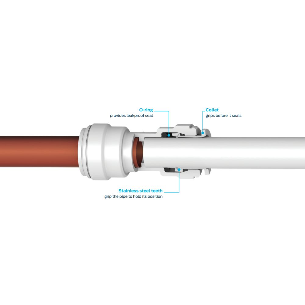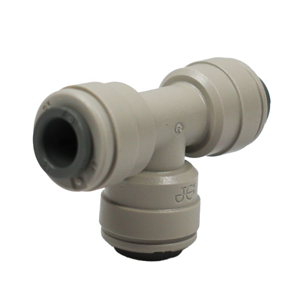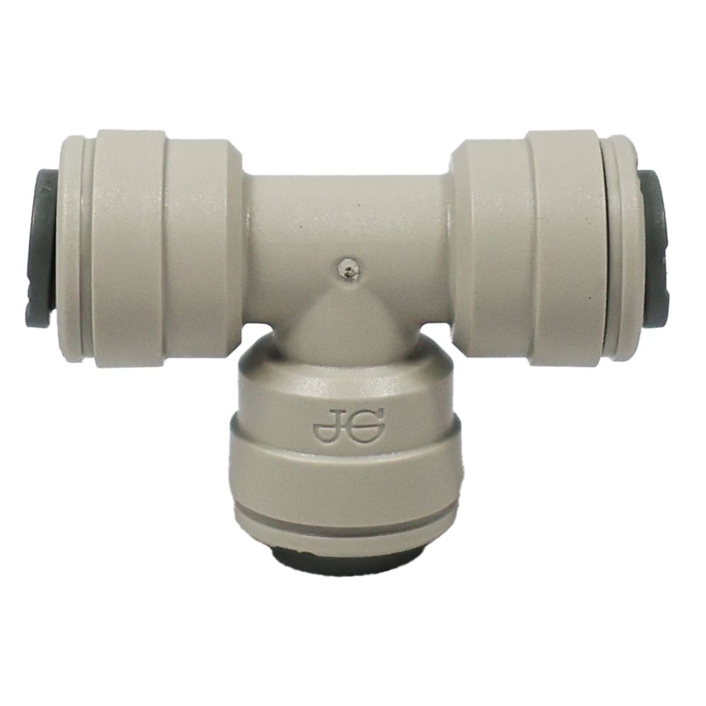 The John Guest union tee makes connecting OD tubing sizes quick and easy. Manufactured in gray acetal with food grade nitrile O-ring, these fittings are suitable for food, beverage, and potable liquids. They are also suitable for air and inert gases therefore can be used for CO2 and nitrogen beverage gas lines, pneumatics, vacuum as well as other applications.
