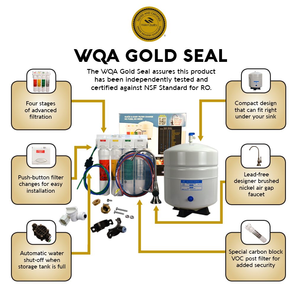 WQA Certified The WQA Gold Seal ensures that this product is constructed of safe materials, and reduction claims are tested.