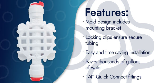 Here's how it works: The valve automatically shuts off production when the tank pressure reaches approximately 60% of the incoming line pressure to indicate the tank is full. This device saves thousands of gallons of water! RO Systems without an ASO valve continually send rinse water to the drain even when the tank is full.