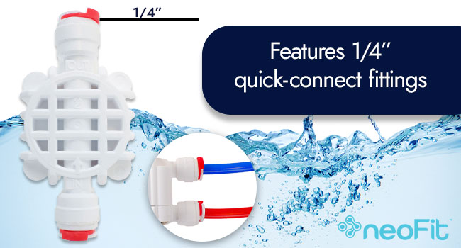 - Insert the Product water tube from the membrane housing into either "Tank" fitting of the valve (ie Low Pressure side).
