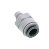 The John Guest male connector makes connecting OD tubing to female flare threads quick and easy. Manufactured in gray acetal with food grade nitrile O-ring, these fittings are suitable for food, beverage, and potable liquids. They are also suitable for air and inert gases therefore can be used for CO2 and nitrogen beverage gas lines, pneumatics, vacuum as well as other applications.