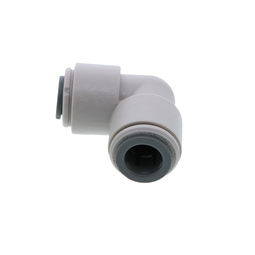 The John Guest reducing elbow makes connecting OD tubing sizes quick and easy. Manufactured in gray acetal with food grade nitrile O-ring, these fittings are suitable for food, beverage, and potable liquids. They are also suitable for air and inert gases therefore can be used for CO2 and nitrogen beverage gas lines, pneumatics, vacuum as well as other applications.
