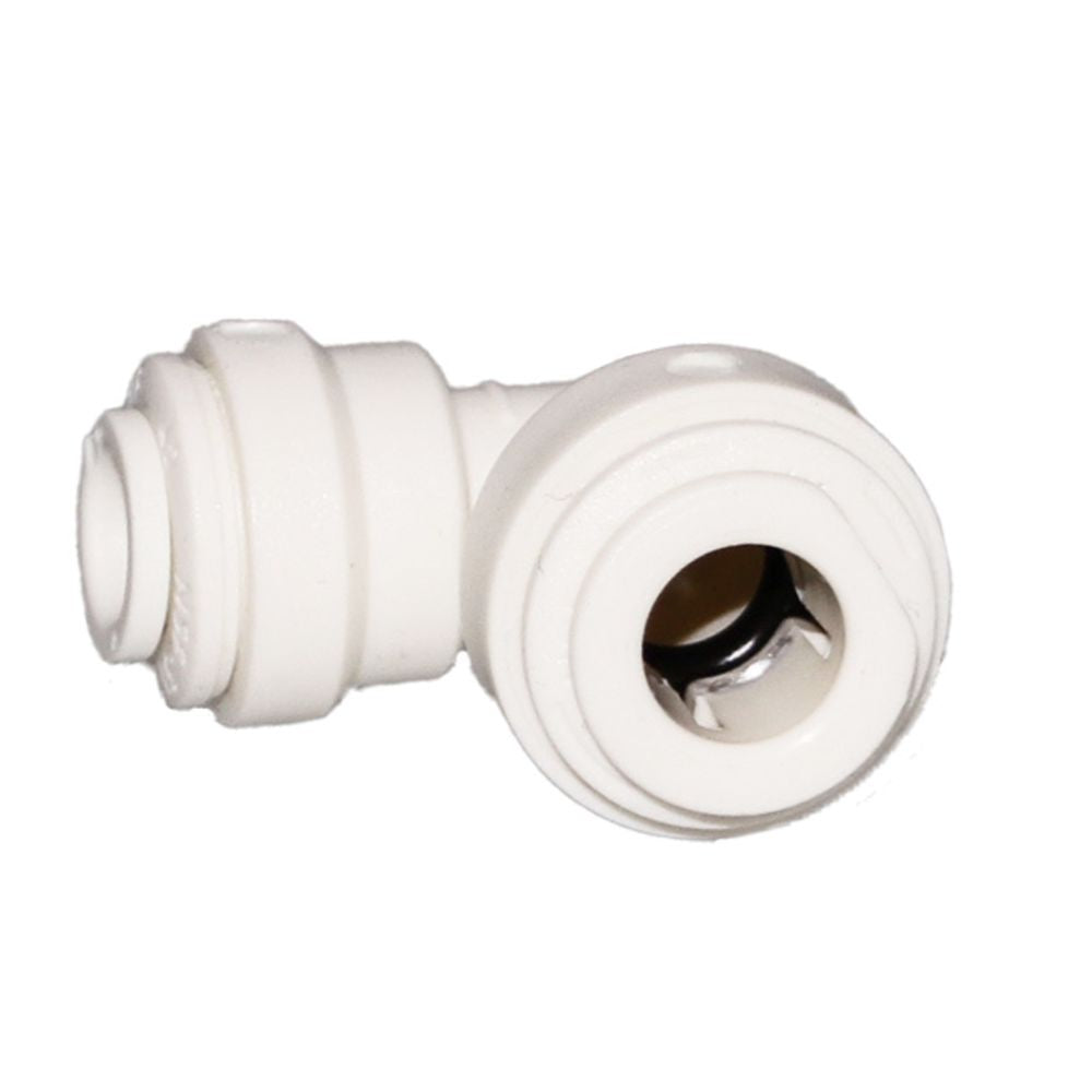 Description The John Guest reducing elbow makes connecting OD tubing sizes quick and easy. Manufactured in polypropylene with food grade EDPM O-ring, these fittings were developed... The John Guest reducing elbow makes connecting OD tubing sizes quick and easy. Manufactured in gray acetal with food grade nitrile O-ring, these fittings are... Features: Engineered Hi-Performance Nylon High chemical resistance EPDM O-ring FDA Approved material NSF Standard 51 & 61 Certified Temperature rated up to 200º F Suitable...