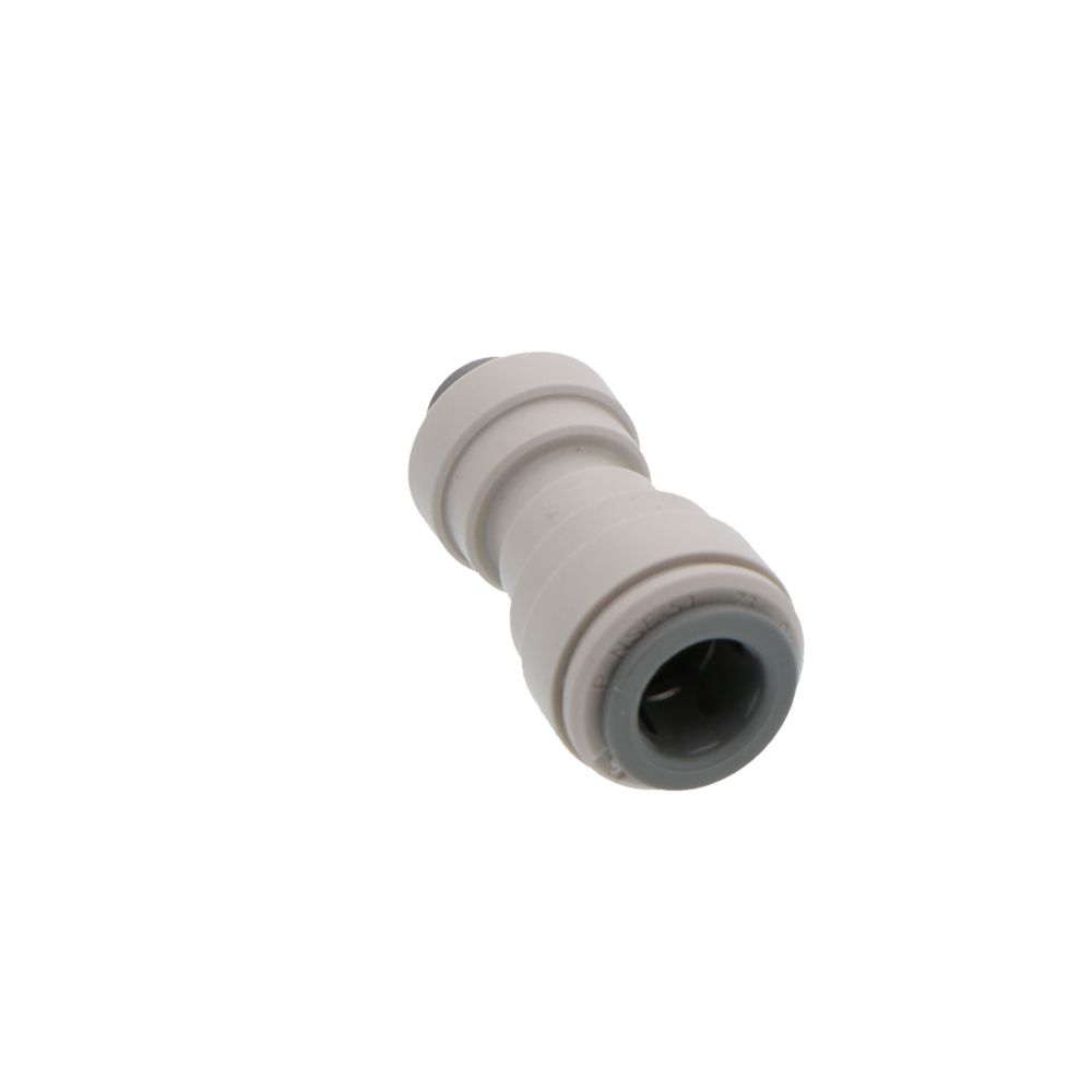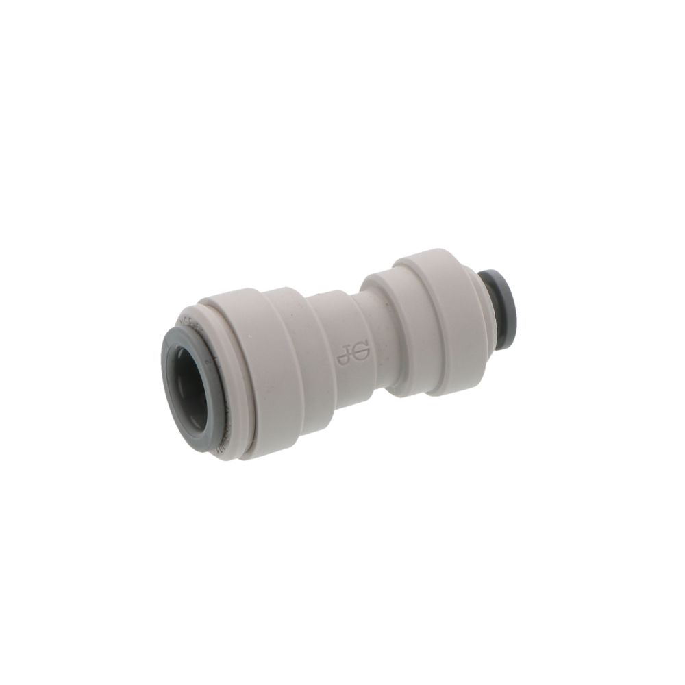 The John Guest reducing union connector makes connecting OD tubing sizes quick and easy. Manufactured in gray acetal with food grade nitrile O-ring, these fittings are suitable for food, beverage, and potable liquids. They are also suitable for air and inert gases therefore can be used for CO2 and nitrogen beverage gas lines, pneumatics, vacuum as well as other applications.