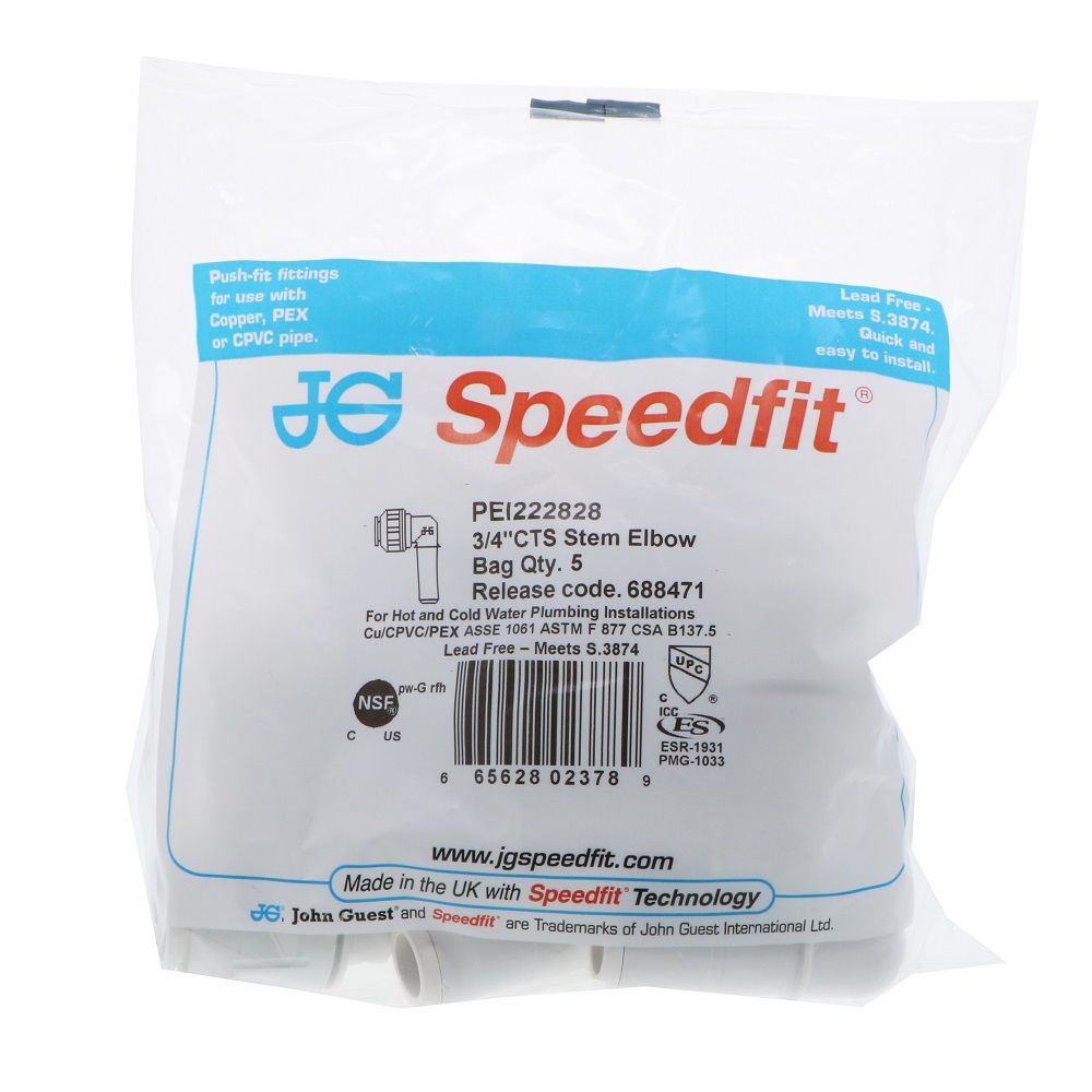 John Guest Stackable Stem Elbow - 3/4 CTS Stem x 3/4 CTS