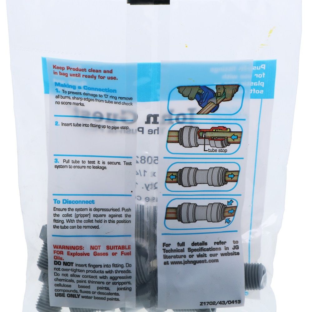 The John Guest stem adapter is used to connect OD tubing sizes to female threads. The stem easily inserts into a John Guest push-fit fittings to make a permanent swivel connector. Fittings are manufactured in acetal, making them especially suitable for applications involving food and beverage and potable liquids. They are also suitable for air and inert gases and can be used on CO2 /nitrogen beverage gas lines, pneumatics, vacuum as well as other applications.