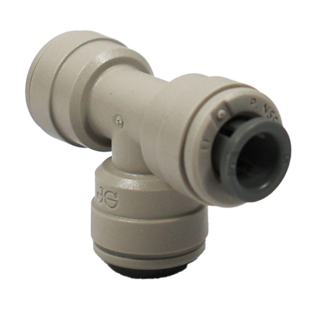 The John Guest union tee makes connecting OD tubing sizes quick and easy. Manufactured in gray acetal with food grade nitrile O-ring, these fittings are suitable for food, beverage, and potable liquids. They are also suitable for air and inert gases therefore can be used for CO2 and nitrogen beverage gas lines, pneumatics, vacuum as well as other applications.