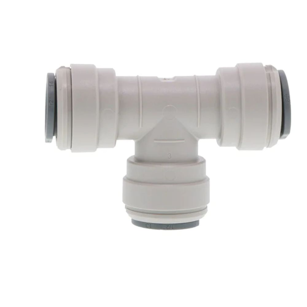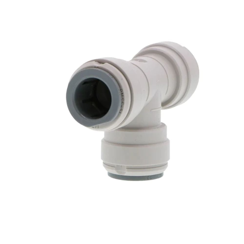 The John Guest union tee makes connecting OD tubing sizes quick and easy. Manufactured in gray acetal with food grade nitrile O-ring, these fittings are suitable for food, beverage, and potable liquids. They are also suitable for air and inert gases therefore can be used for CO2 and nitrogen beverage gas lines, pneumatics, vacuum as well as other applications.