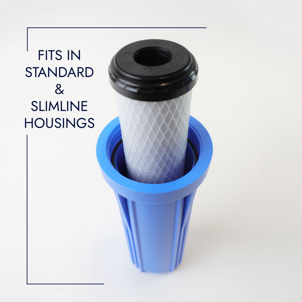 The Neo-Pure CTOX-2510 Carbon Block Filter for advanced filtration is manufactured using coconut shell carbon for improved reduction of chloramine, chlorine taste, and odor as well as a wide variety of contaminants including lead, cysts, MTBE, and VOCs. The CTOX-2510 chloramine filter is ideal for use as a reverse osmosis prefilter or postfilter, and all materials are FDA compliant so they are an excellent choice for many residential, food service and commercial drinking water applications.