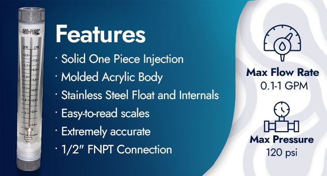 Neo-Pure Inline Flowmeter 0.2-2GPM 1/2" FNPT