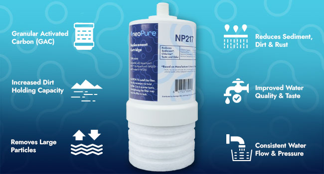 - Contaminant Reducer: The Neo-Pure NP217 filter will reduce sediment and chlorine taste and odor.