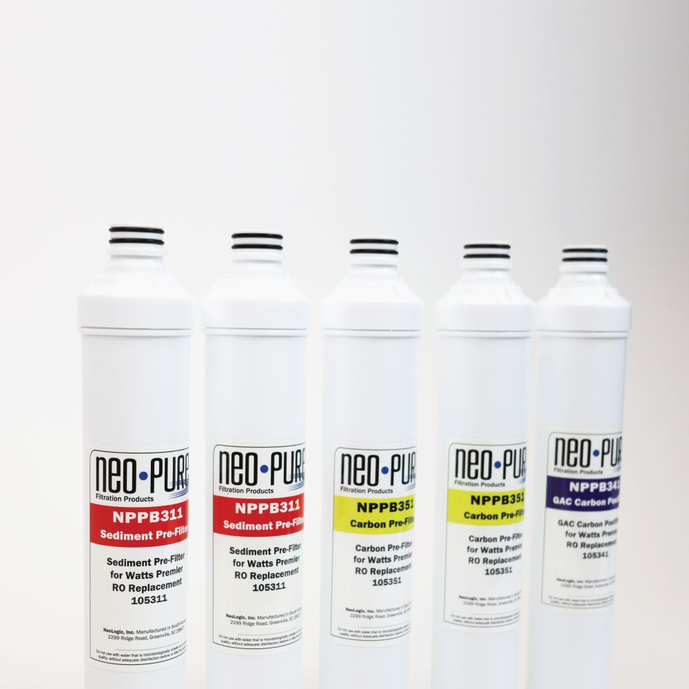 (2) Neo-Pure RO-Pure Carbon Pre-Filter Replacement For Watts Premier 105351: Active carbon removes chlorine and enhances taste. Also conditions water to prepare it for RO treatment. Change every 6 months.