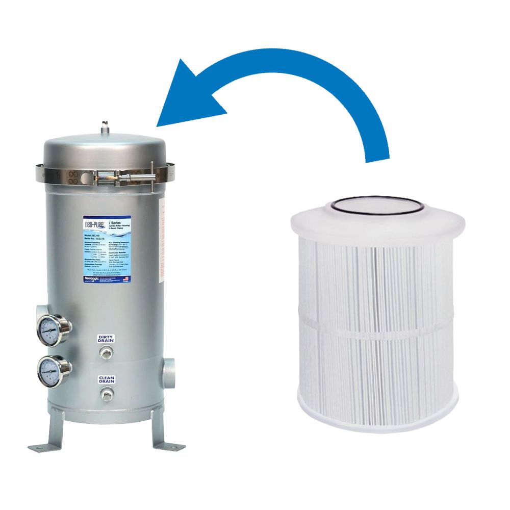The Neo-Pure PSJ-40 Pleated Synthetic Jumbo Cartridge features pleated synthetic polypropylene filter media which allows for lower initial pressure drop and higher flow rates which means fewer cartridges to change. The PSJ Series filter's pleated surface area translates to increased filter life, higher dirt loading capacity and increased particle removal.