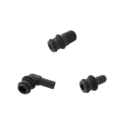 - 1/2" Hose Barb fittings (elbow and straight) and 1/2" MNPT Straight fitting