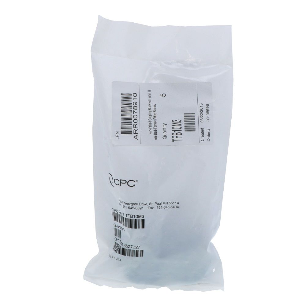 TFB10M3 Non-Valved Hose Barb Coupling Body with Female Fitting Bodies 3mm ID Barb