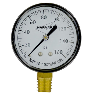 Water Pressure Gauge 160 PSI, 1/4" MPT, 2.5" Glass Dial, Lower Mount, Black Steel Case