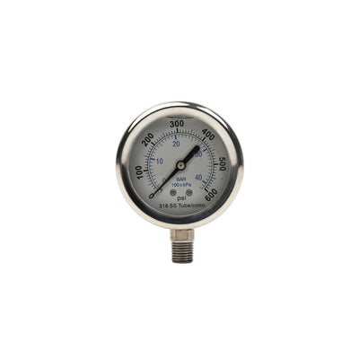 Water Pressure Gauge 600 PSI, 1/4" MPT, 2.5" Dial, Lower Back Mount, SS Case